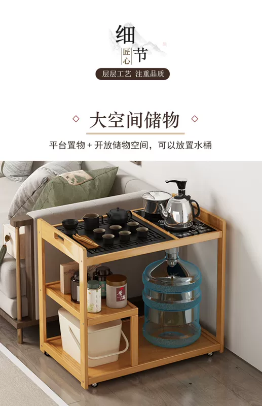 Bàn trà di động, xe trà nhỏ gia đình, bàn trà, ấm đun nước, khay trà tích hợp, bàn cà phê kung fu, tủ bên sofa, tủ trà bàn trà điện thông minh
