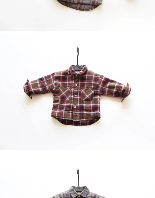 Bé trai cộng với áo sơ mi nhung dài tay trẻ em kẻ sọc dày áo ấm trẻ em inch quần áo bé trai áo thủy triều quần áo trẻ em 10 tuổi Áo sơ mi