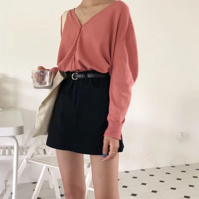 Big sim retro khí chất một từ váy váy 2018 thu đông mới eo cao váy denim thon chân váy đẹp