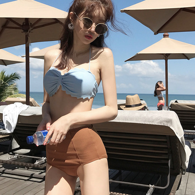 Bộ bikini giảm béo eo cao mới của Hàn Quốc ngực nhỏ tập hợp áo tắm nữ mùa xuân nóng bỏng - Bikinis đồ bơi nữ dạng quần váy
