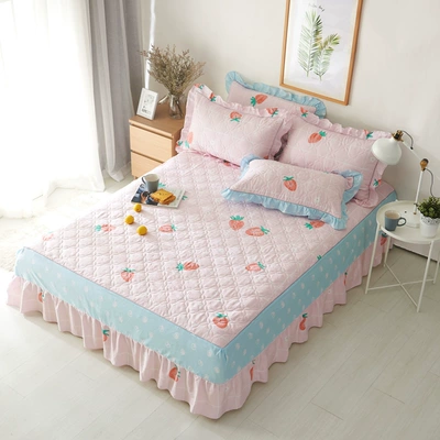 Bộ đồ giường bằng vải bông đơn nữ màu hồng dâu phiên bản Hàn Quốc của bộ chăn ga gối cotton dày 1,2m1,5 m 1,8 đôi khăn trải giường spa cao cấp