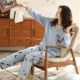 Bộ đồ ngủ dài tay cho nữ mùa thu và mùa đông cotton Bộ đồ cotton giản dị của Hàn Quốc có thể mặc ngoài mùa xuân và mùa thu mùa đông phục vụ nhà mùa thu nữ đồ bộ thun Bộ Pajama