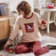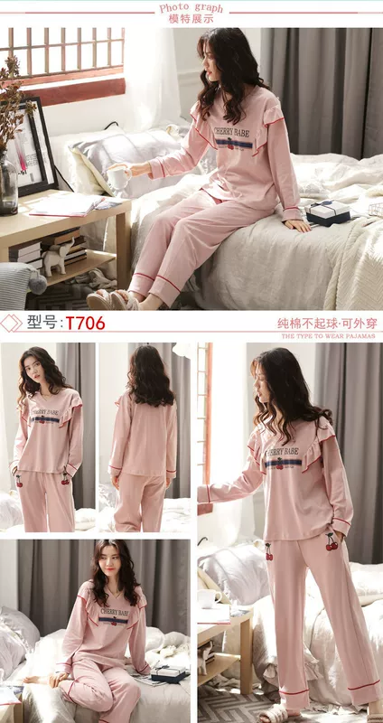 Bộ đồ ngủ dành cho nữ mùa thu đông và cotton dài tay phiên bản Hàn Quốc có thể được mặc bên ngoài bộ đồ hai dây mùa xuân và mùa đông dễ thương thời trang mặc nhà Bộ Pajama