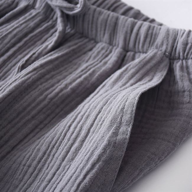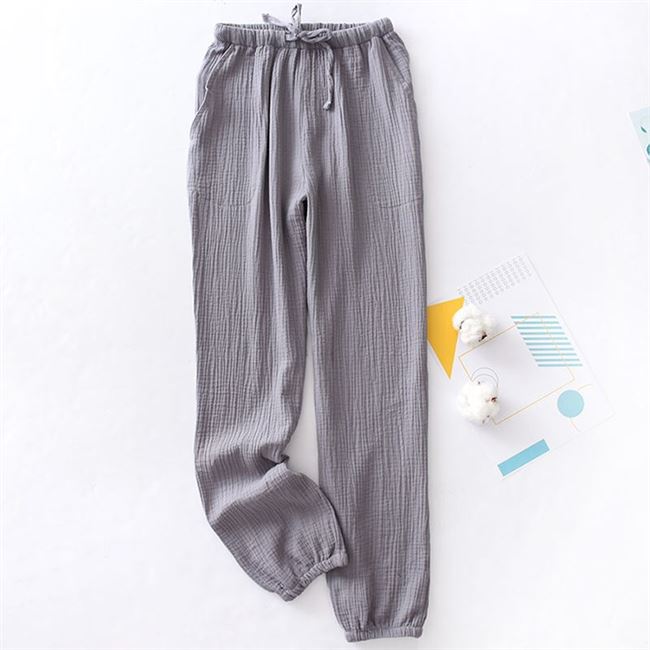 Bộ đồ ngủ nữ cotton mùa hè và vải lanh 9 điểm quần cotton vải nam và nữ cotton pyjama màu xanh hải quân rắn chân với chùm cao - Quần tây Quần tây