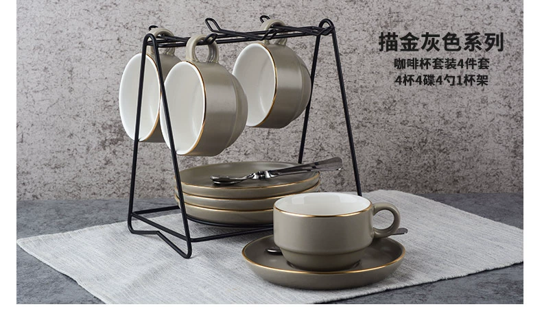 Bốn Fortune New Châu Âu Cốc Cà Phê Đặt Sáng Tạo Cốc Cà Phê Gốm Cốc Cà Phê Chiếc Đĩa Đặt Tiếng Anh Cốc Cà Phê phin cafe đẹp Cà phê