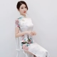 Cải tiến 2018 mẹ nữ váy hè catwalk cỡ lớn sườn xám dài đoạn mới chia đôi trang phục sân khấu retro tay áo ngắn áo khoác cho người trung niên Quần áo của mẹ