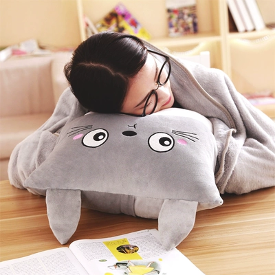 Chăn gối Chinchilla sử dụng kép văn phòng ngủ trưa gối lông cừu san hô chăn ba trong một chiếc đệm điều hòa không khí chăn gối văn phòng 2 trong 1