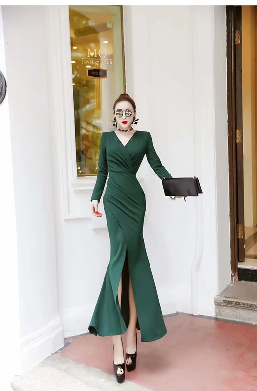 Châu âu và Mỹ tính khí nữ mùa thu và mùa đông mới sexy V-Cổ slim giảm béo không thường xuyên đuôi cá váy eo váy váy bầu Sản phẩm HOT