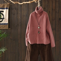 Chi Han Feng mùa thu và mùa đông retro lỏng cổ cao tay áo dài sọc sọc ngắn ngắn dài áo len dệt kim ấm áp ao len nu Áo len