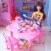 Chơi đồ chơi nhà mô phỏng đồ nội thất nhà bếp nhà hàng bàn ăn và ghế màu hồng kem thực phẩm chơi phụ kiện đồ chơi cô gái đồ chơi cho trẻ sơ sinh Đồ chơi gia đình