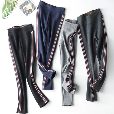 Cộng với quần lửng nhung dày của phụ nữ bên ngoài mặc quần sọc mỏng eo cao quần chân đen mùa đông quần ấm quần ngố nữ cao cấp Quần tây thường
