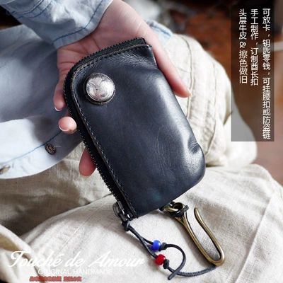 Da retro sáng tạo thủ công da bò da xe điều khiển từ xa túi chìa khóa nam và nữ dây kéo ví ví tiền xu - Trường hợp chính