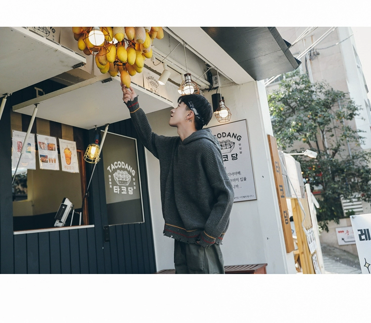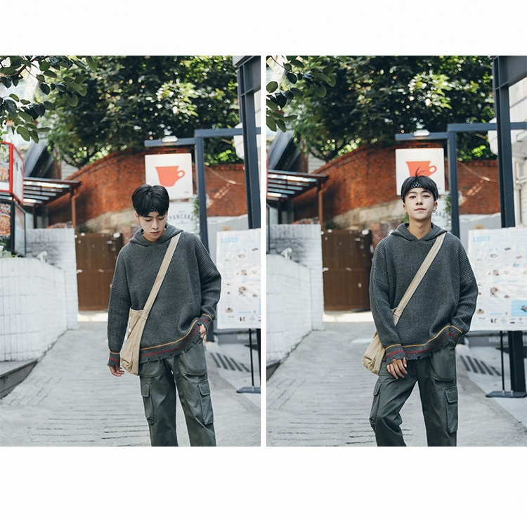 [Đặc biệt cung cấp giải phóng mặt bằng] mùa xuân hem lỗ trùm đầu áo thun áo len Hàn Quốc phiên bản của áo len lỏng nam xu hướng áo phụ kiện nam Kéo qua