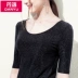 Dan ngôn ngữ 2019 mới của phụ nữ mùa xuân cơ bản đơn giản áo thun tay áo sơ mi nữ với áo cổ tròn khí chất - Cộng với kích thước quần áo áo thun dài tay nữ Cộng với kích thước quần áo
