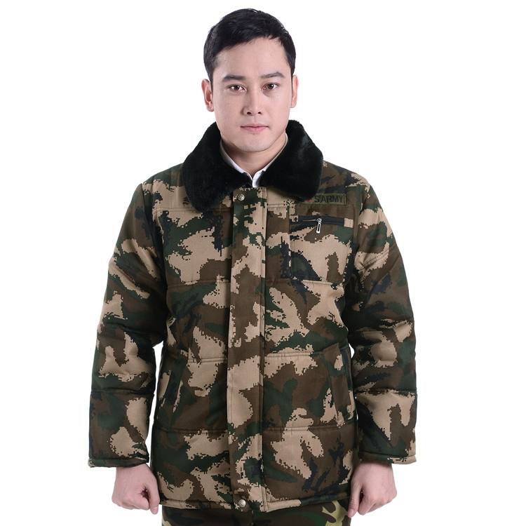 Đàn ông trung niên mặc áo khoác dày bằng vải bông mùa đông cộng với áo khoác cotton nhung cũ ngụy trang lỏng lẻo tool dụng cụ ngoài trời áo khoác bomber nam