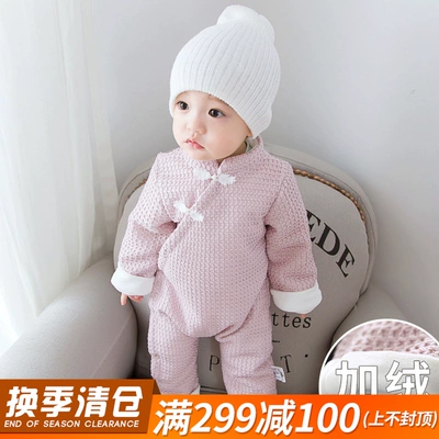 Đàn ông và phụ nữ em bé mùa thu đông cộng với quần áo nhung dày cho bé quần áo romper sơ sinh cotton 0-1 tuổi Tháng 6 body giả vest cộc tay bé trai