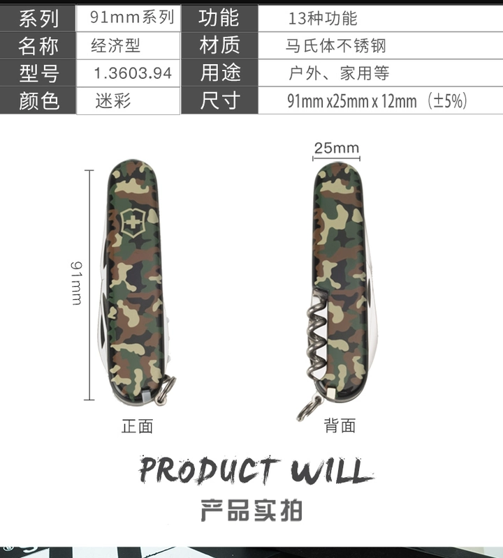 Dao quân đội Thụy Sĩ Victorinox Dao chính hãng 91mm gấp 1.3603.94 Dao đa năng dao tiện ích dao xếp Swiss Army Knife