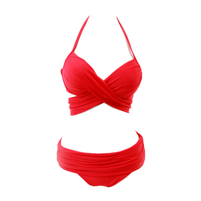 Đồ bơi câu cá lớn quyến rũ siêu tích cực màu đỏ thép kéo tụ tập dây đeo chéo bikini nóng bỏng tắm phù hợp với nữ - Bikinis bộ bơi dài tay nữ