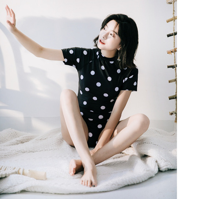 Đồ bơi mới nữ mỏng che bụng gợi cảm sóng Hàn Quốc cổ cao tay áo ngắn học sinh bảo thủ áo tắm một mảnh - Bộ đồ bơi One Piece mẫu áo tắm liền thân đẹp Bộ đồ bơi One Piece