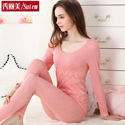 Đồ lót nữ mỏng phần nền thiết lập đáy cổ tròn chặt chẽ quần áo mùa thu quần dài quần cotton nữ áo len mùa thu và mùa đông đồ lót nữ Phù hợp với nóng lên
