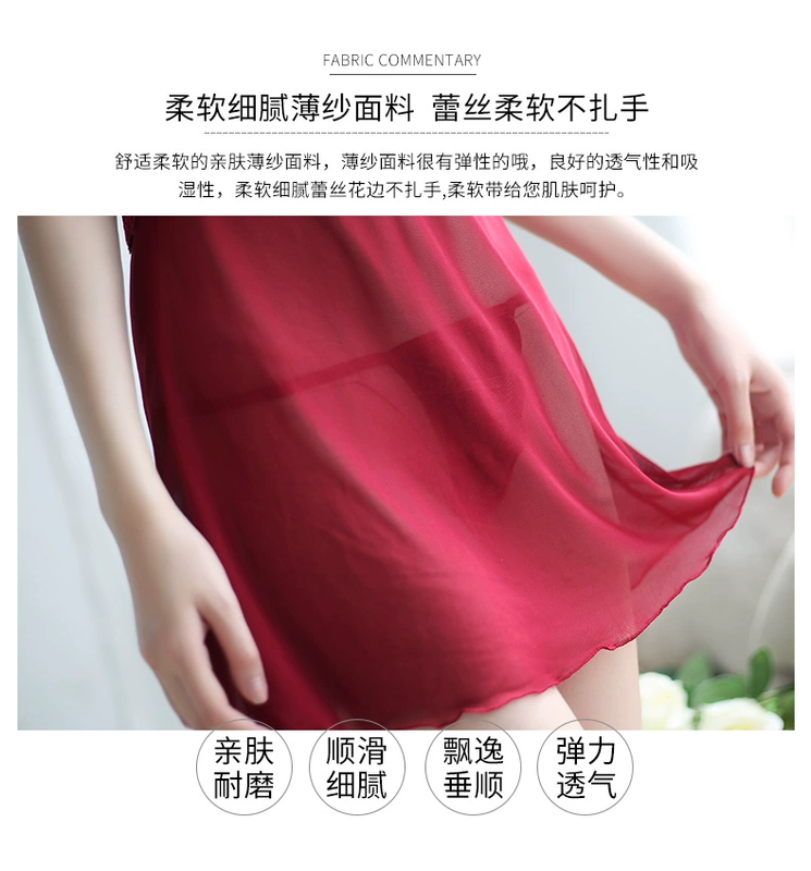 Đồ ngủ gợi cảm của phụ nữ mùa thu và mùa đông vui vẻ váy ngủ dành cho người lớn nóng bỏng đồ lót mỏng Sao trong suốt dây đeo ngắn phù hợp với ren đầm suông đẹp