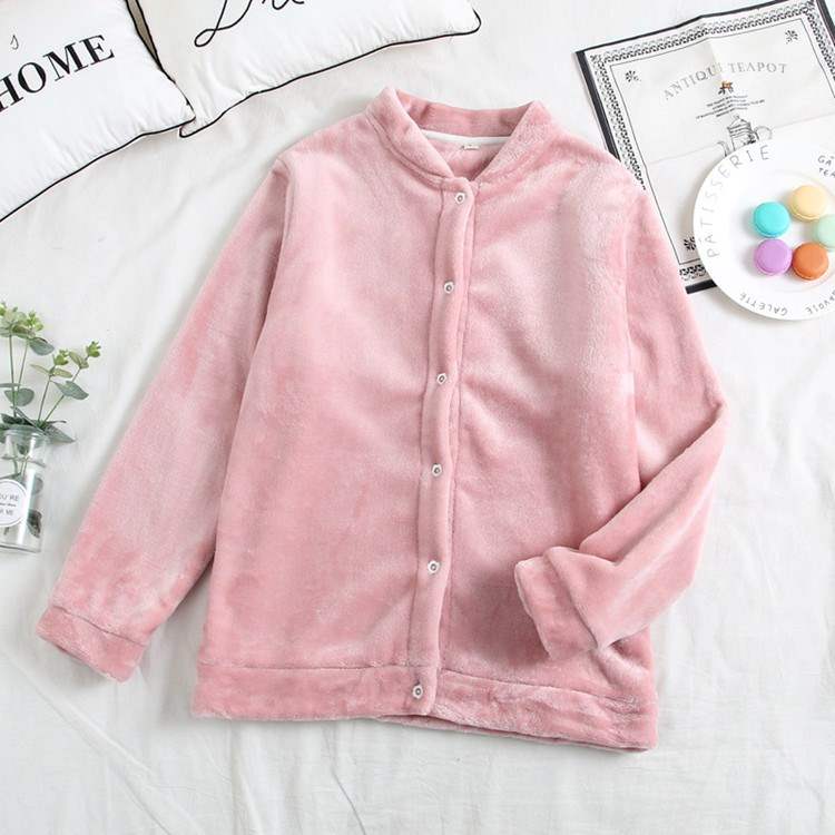 Đồ ngủ nam và nữ mùa thu và mùa đông áo dài tay đơn mảnh flannel sinh viên dày ấm san hô nhung người yêu dịch vụ nhà - Pyjama