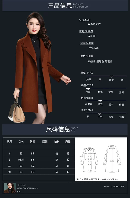 Đôi phải đối mặt với cashmere coat ladies 2018 mới mùa thu và mùa đông Hepburn gió hai mặt trong phần dài của eo áo len áo phao dáng dài hàn quốc Áo len lót đôi