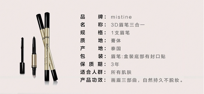 Giải phóng mặt bằng! Thái Lan Mistine3D stereo lông mày bút chì lông mày bút chì bột lông mày nhuộm ba trong một không thấm nước không hào quang chì kẻ mày innisfree màu 04 Bút chì lông mày / Bột / Stick