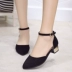 Giày cao gót ngắn và thấp 3cm Giày cao gót dày có mũi nhọn bằng da lộn dép nữ mùa hè khóa từ mùa xuân giày sinh viên sandal chiến binh