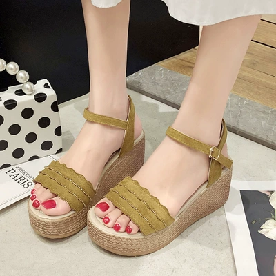 Giày sandal nữ cổ tích gió 2019 hè mới Hàn Quốc phiên bản thời trang hoang dã muffin nêm đế giày nữ - Sandal Sandal
