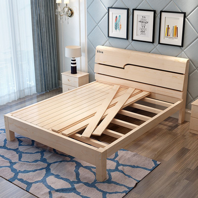 Giường đơn châu Âu 1.2 phòng ngủ chính kinh tế tối giản hiện đại không có nệm giường gỗ nguyên khối 1.5 - Giường