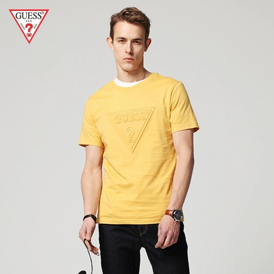 GUESS vài mô hình 2018 mùa xuân và mùa hè nam inverted triangle LOGO màu rắn vòng cổ ngắn tay T-Shirt-MI2K9409K quần áo nam Áo khoác đôi
