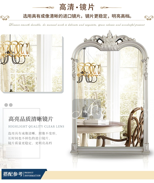 Gương trang điểm màu đỏ Gương phòng tắm châu Âu và Mỹ Gương phòng tắm retro trang trí bàn trang điểm treo gương 69 * 106 - Gương gương bàn phấn