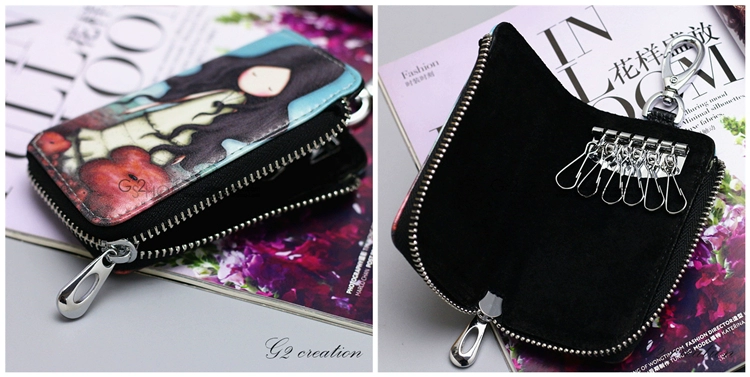 Hàn Quốc và Nhật Bản dễ thương in tươi vẽ tay phim hoạt hình túi chìa khóa xe sáng tạo graffiti khóa túi túi