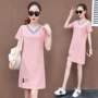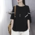 Han Suoyi Văn chương đơn giản hè 2019 mới của phụ nữ cổ tròn tay ngắn Áo thun nữ rộng rãi giản dị - Cộng với kích thước quần áo áo khoác nữ hàn quốc Cộng với kích thước quần áo