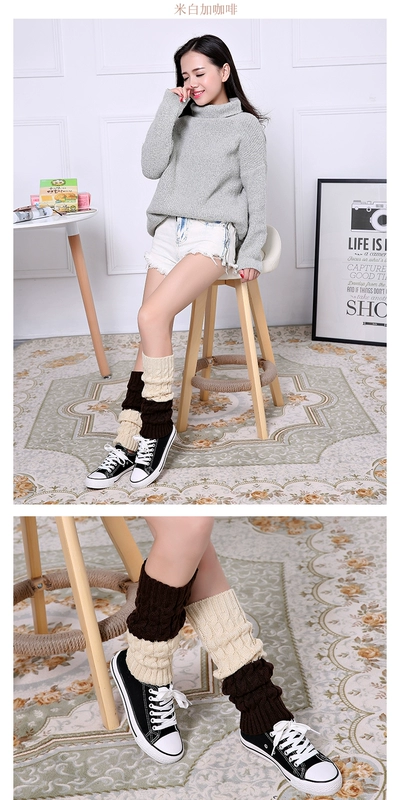 Hoa thủy triều 汐 dày ấm đống cọc len vớ đặt mùa thu và mùa đông mẫu giày nữ cao cổ đặt trong ống qua quần legging tất chân Vớ mắt cá chân