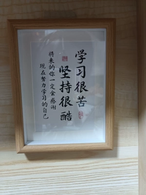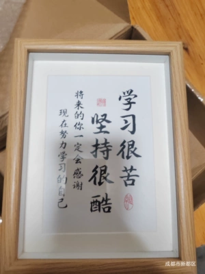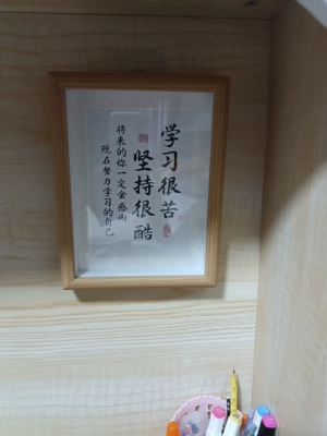 "Chất lượng rất tốt, tay nghề tốt, màu sắc khung gỗ đẹp và dày dặn, kính trong suốt, có thể treo hoặc đặt, các bé rất thích! [Nhận xét bổ sung] Tôi rất thích sản phẩm này, chữ viết rõ ràng và đẹp, và rất có động lực."