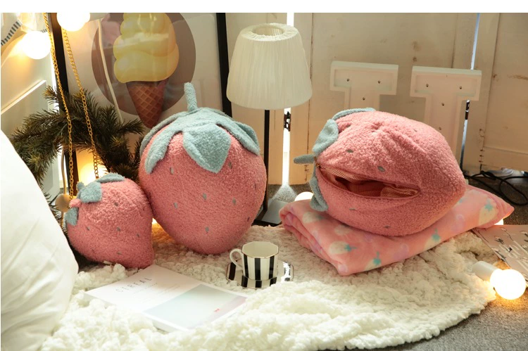 Ins ngọt ngào và mềm mại xương rồng dâu gối chăn chăn đệm đệm quilt sử dụng kép văn phòng điều hòa không khí chăn chăn gối 2 trong 1 cho bé