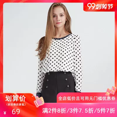 Jane hoa nữ mùa xuân áo mới hoang dã chấm giản dị áo sơ mi voan mỏng sơ mi nữ111145 - Cộng với kích thước quần áo áo sơ mi nữ kiểu hàn quốc Cộng với kích thước quần áo