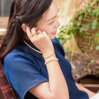 Jue người gốc ngọc trai nước ngọt trắng tự nhiên sáp ong vàng 9K vòng tay nữ [vi ngọt] vòng huyết long Vòng đeo tay Clasp