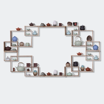 Kệ gỗ treo tường phòng khách treo tường vách ngăn kệ sách kệ sách phong cách Trung Quốc thêm kho báu ấm trà giá - Kệ kệ giày gỗ 5 tầng Kệ