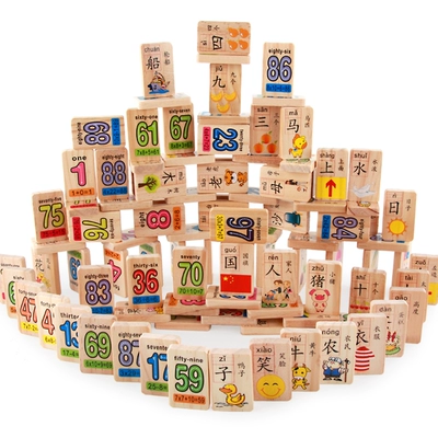 Khối gỗ 100 ký tự Trung Quốc Domino trẻ em của đồ chơi giáo dục 1-2-3-6 một năm tuổi bé biết chữ đồ chơi cho trẻ em Khối xây dựng
