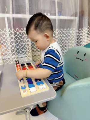 "Em bé thích chơi với bảng ghép và không thể ngừng chơi ngay khi nhận được ????Màu sắc rất phù hợp Ghép số đẹp ~"