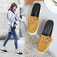 Không có giày vải gót nữ sinh viên Hàn Quốc một nửa dép 2018 mùa hè mới phẳng đế bằng giày lười sandal nữ đi học Dép
