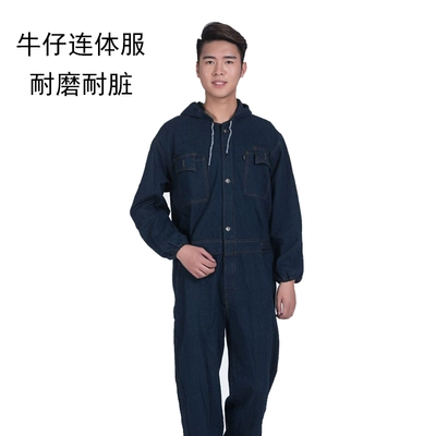 Kích thước lớn cotton denim một mảnh quần yếm nam phù hợp với mùa thu và dịch vụ hàn mùa đông dịch vụ bảo hiểm lao động dịch vụ sửa chữa tự động quần áo chống bụi đồ bộ nam trung niên Bộ đồ