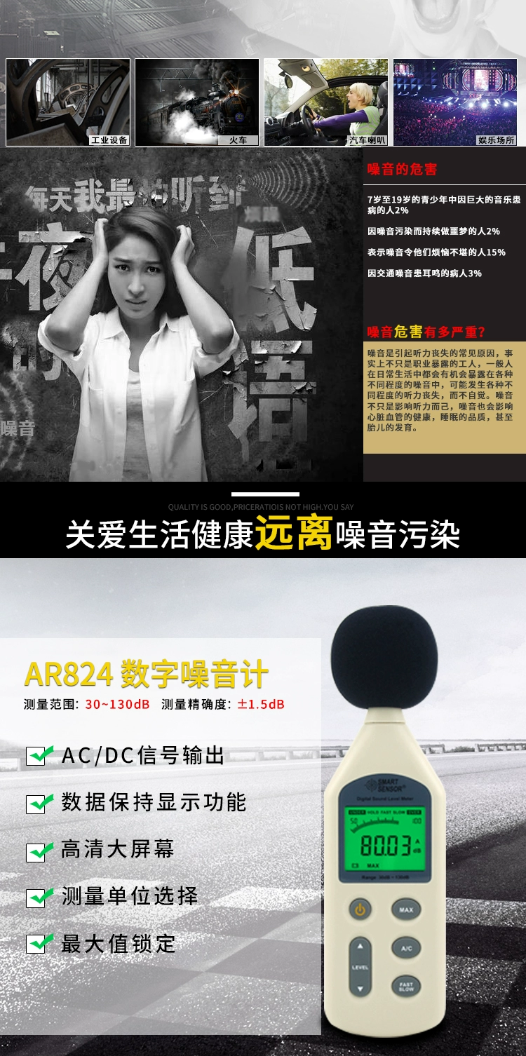 đơn vị đo độ ồn Màn hình kỹ thuật số kỹ thuật số Xima AR824 Máy đo tiếng ồn kỹ thuật công nghiệp cầm tay Máy đo mức âm thanh Đo tiếng ồn môi trường Máy đo decibel đơn vị đo độ ồn