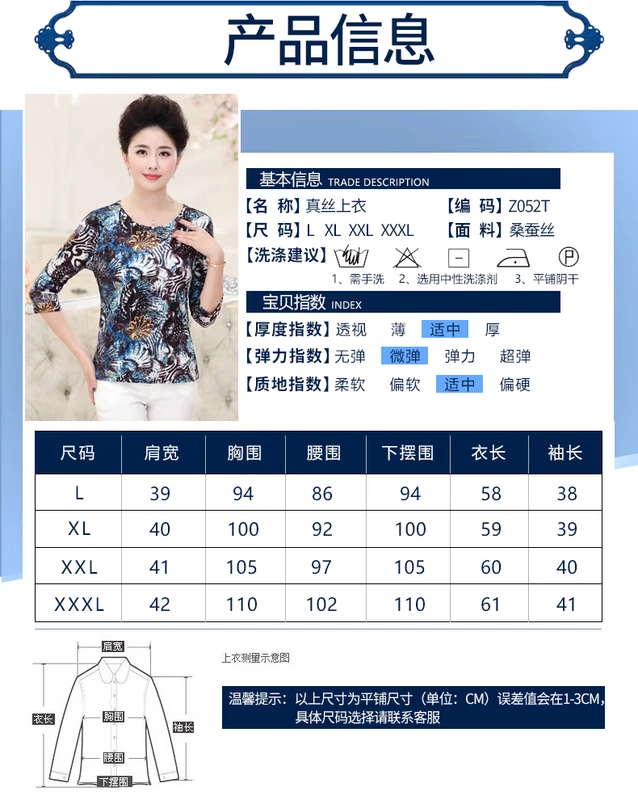 Màu xanh 蓓 mùa xuân và mùa hè dệt kim lụa áo bảy- điểm tay áo nữ t- shirt lụa đội mũ trùm đầu tay áo đáy áo mẹ đầm áo đầm trung niên Quần áo của mẹ