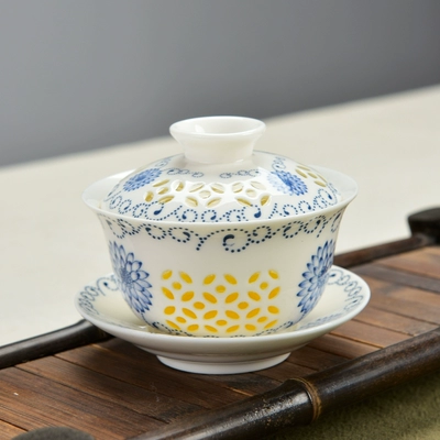 Màu xanh và trắng sứ tổ ong tinh tế bao gồm bát trà rỗng chuẩn bị ba cốc chén trà bát gốm kungfu bộ ấm trà lớn - Trà sứ bộ pha trà đạo
