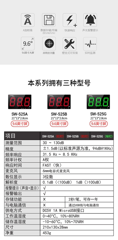 thiết bị đo tiếng ồn Máy đo decibel treo tường Shendawei, máy đo tiếng ồn, máy đo tiếng ồn, kiểm tra âm lượng tiếng ồn SW-525A/525B đơn vị đo độ ồn