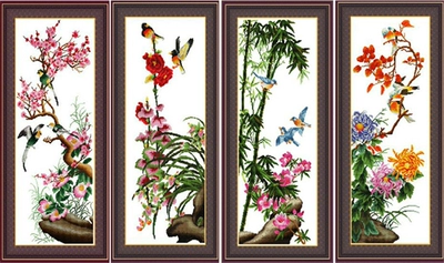 Meilan tre và cúc chéo khâu bốn bức tranh dọc phiên bản nhỏ phòng khách thủ công đơn giản hiện đại 2019 dòng thêu mới miếng nhỏ - Công cụ & phụ kiện Cross-stitch khung thêu có chân Công cụ & phụ kiện Cross-stitch
